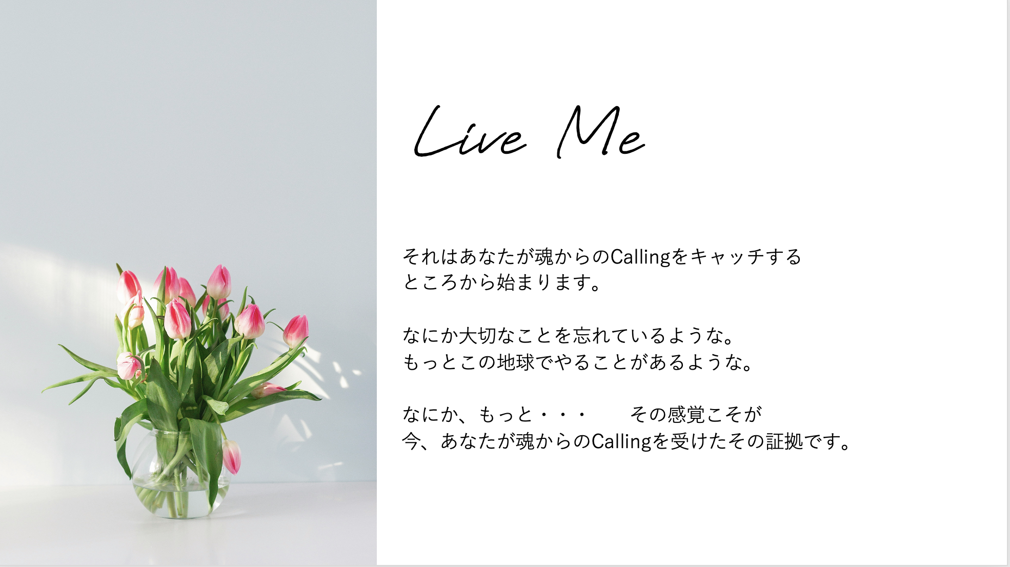 それらを通じて私が伝えたいのは「自分の光を放つことをあきらめないで」ということ。「あなたにしか放てない光があるよ」ということ。そして「その光を放ちにあなたは生まれてきたんだよ」ということ。 「本当にそうだった」と、いつかあなたがその美しい生きる力を引き出し、存分に発揮して、溢れ出すまばゆい光に満ちた自分を誇らしく思えるようになって欲しいのです。そんな私の願いが詰まったプログラムたちは、あの時の私が、あの感覚を取り戻すことをあきらめず、涙を拭いて顔を上げ、自分に向き合い、足を前に進めてきた体験があるからこそつくれたものだと思っています。